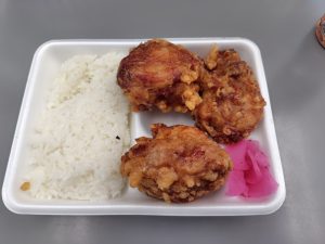 からあげ3つに対し白米【普通】は少し物足りなさを感じたので沢山食べられる方は+60円で【大盛り】がオススメです。