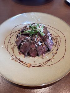 メインのエゾシカロースト丼は赤身のウチモモを使用しかなり柔らかく噛めば噛む程うま味が感じられ、山わさびとフライドオニオンが良いアクセントとなり最高の丼です!