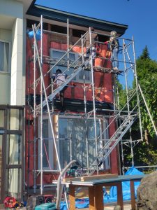 ↑ まずは足場施工後、原因と考えられる範囲の外壁を撤去させて頂きます^^