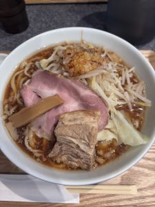 全体的に次郎系ラーメンを彷彿とさせる見た目に麺は太めのワシワシ系でかなり食べ応えがあります。